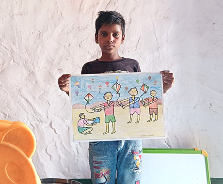 Art education, guided by Shri P. K. Roy, a President Awardee and renowned Art Consultant, plays a key role in our mission. Through art, these children explore their creativity, develop an aesthetic sense, and find a voice beyond their hardships.
